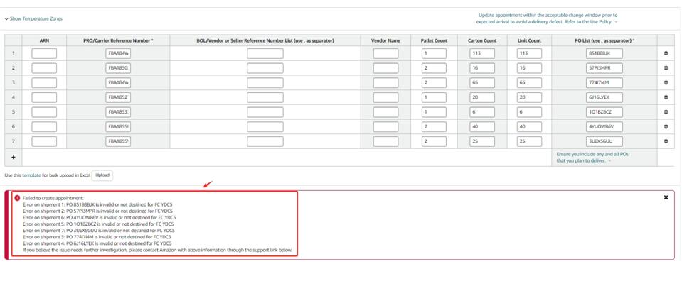 1.多倫多地區(qū):YHM1稍微爆倉(cāng),有拒收情況出現(xiàn),等時(shí)在2-3H;YGK1放約少,有拒收情況出現(xiàn)。爆倉(cāng)倉(cāng)庫(kù)預(yù)計(jì)派送時(shí)間在7-10天,新增YDC5—目前所有YDC5的PO# 無(wú)法預(yù)約(具體YDC5預(yù)約截圖已郵件發(fā)給到對(duì)應(yīng)客服),派送的貨物全部被拒收。經(jīng)過(guò)我司海外與YDC5亞馬遜內(nèi)部核實(shí),此倉(cāng)庫(kù)暫時(shí)未對(duì)外放約,客人可以聯(lián)系亞馬遜進(jìn)行申訴換倉(cāng),已到倉(cāng)的YDC5貨物,我司提供以下2種解決方案。