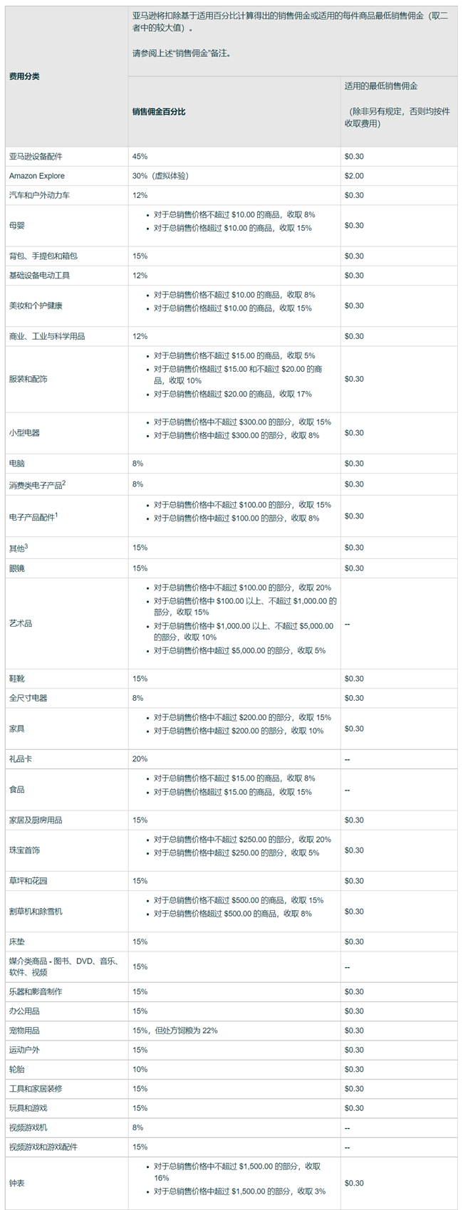 以亞馬遜美國站為例,銷售傭金如下圖所示: