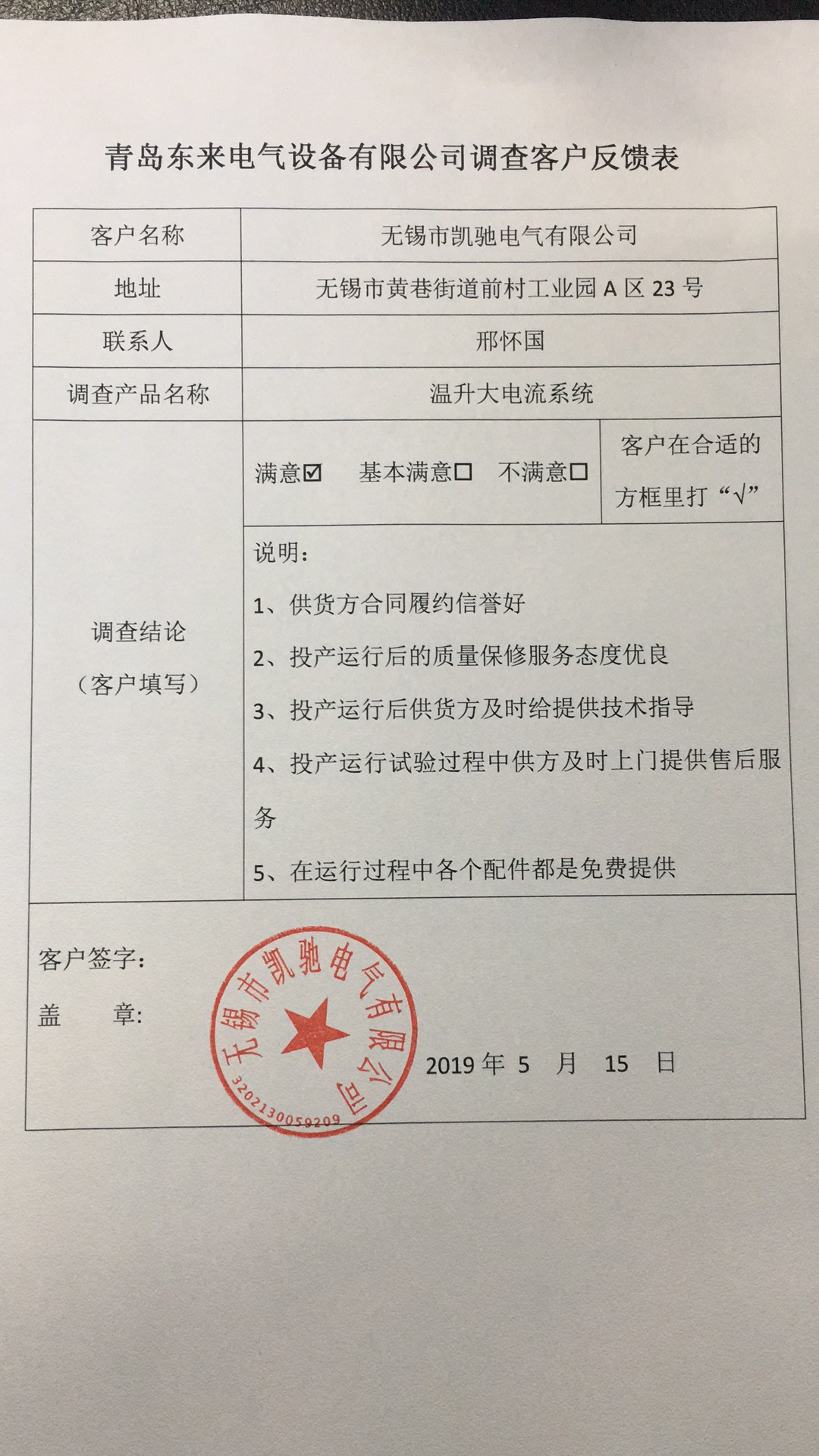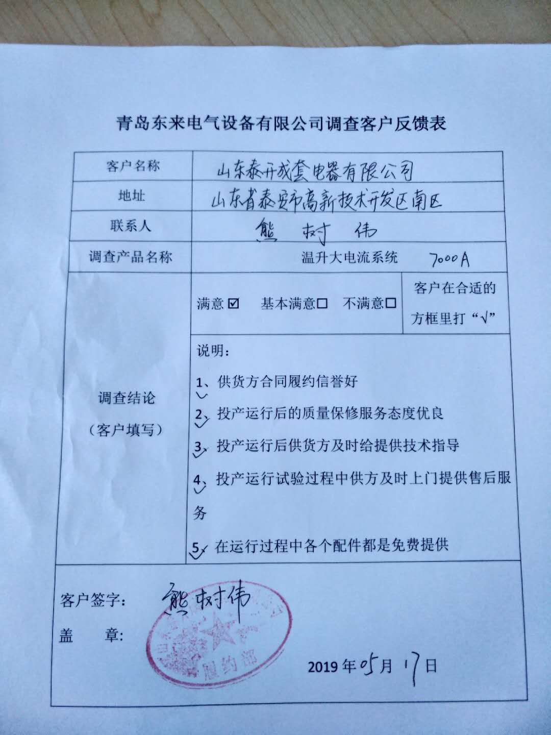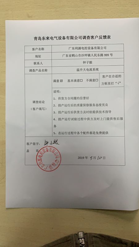 青島東來電氣設(shè)備有限公司調(diào)查客戶反饋表.pdf